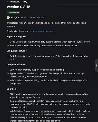 Release Version 0.8.15 Β· ethereum/solidity Β· GitHub